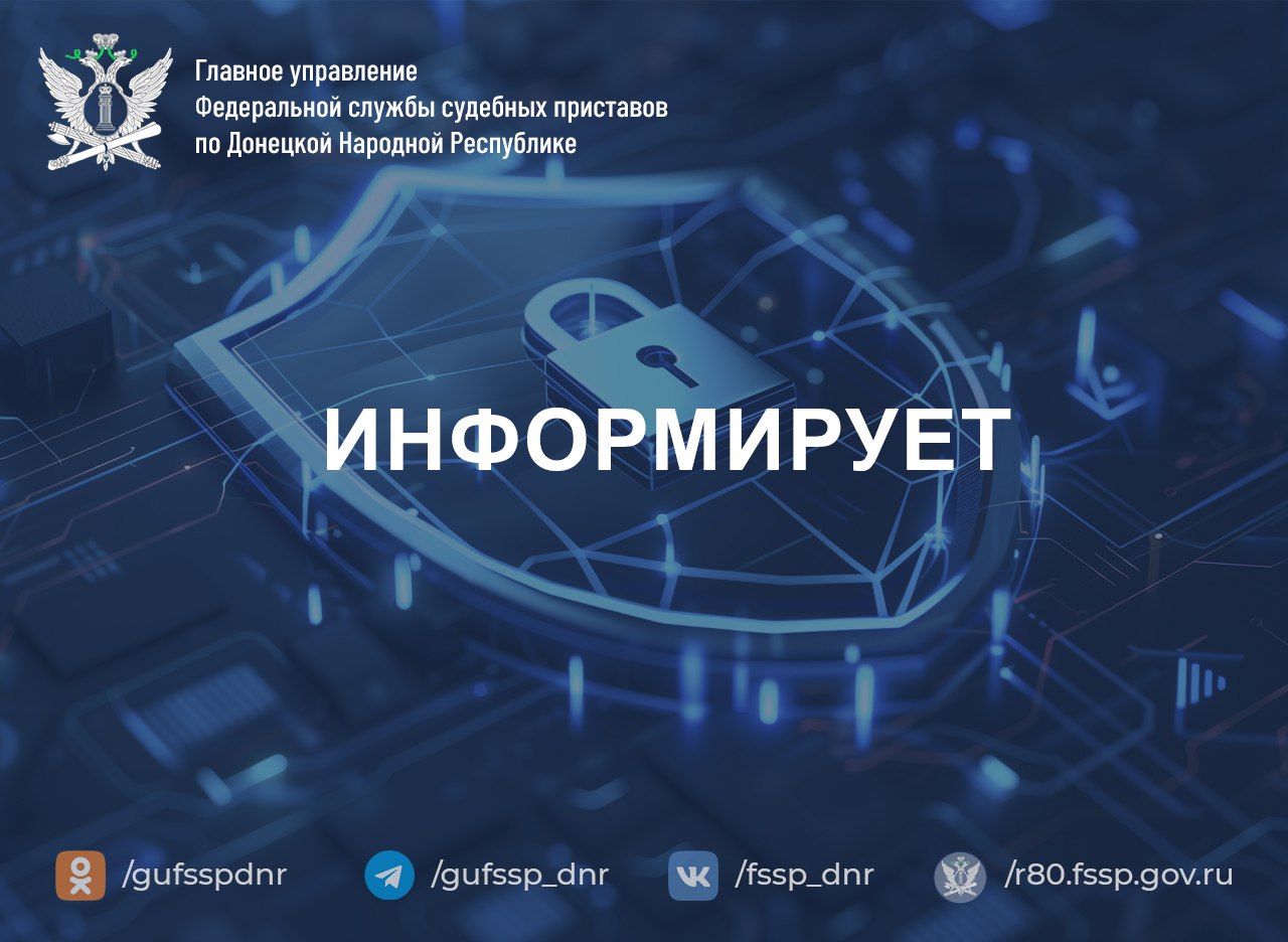 ГУФССП России по Донецкой Народной Республике информирует: в условиях активного развития онлайн-сервисов защита персональных данных становится неотъемлемой частью вашей безопасности.