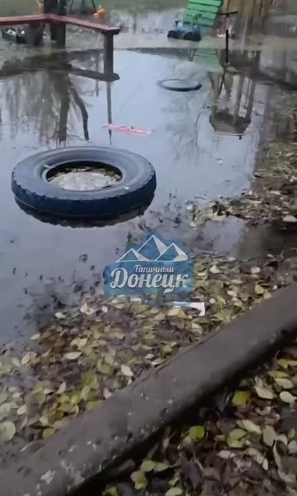 Новое коммунальное озеро появилось возле дома № 41 по улице Сомова в Куйбышевском районе Донецка.