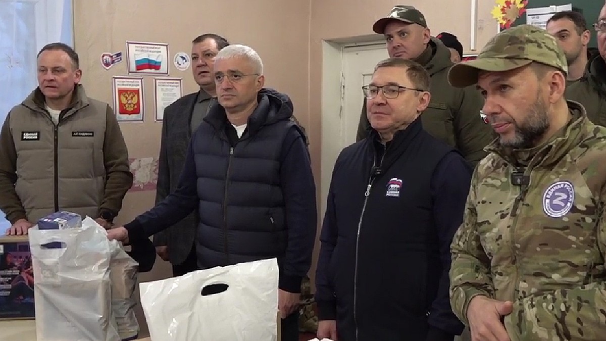 Секретарь Генсовета «Единой России» Владимир Якушев, секретарь Донецкого регионального отделения партии, глава ДНР Денис Пушилин, руководитель Центрального исполнительного комитета партии Александр Сидякин и депутат Госдумы Зураб Макиев привезли в Селидово генераторы, необходимые медикаменты и продукты.