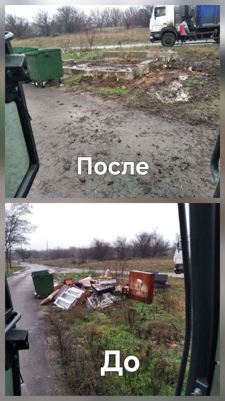 ГУП ДНР "ДОНСНАБКОМПЛЕКТ" произведен вывоз перенакоплений мусора объемом - 294 м3 по адресам: