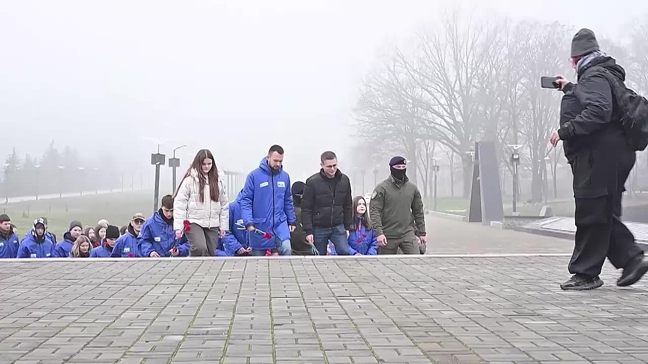 Собравшиеся почтили память павших минутой молчания, после чего возложили алые гвоздики к подножию монумента.