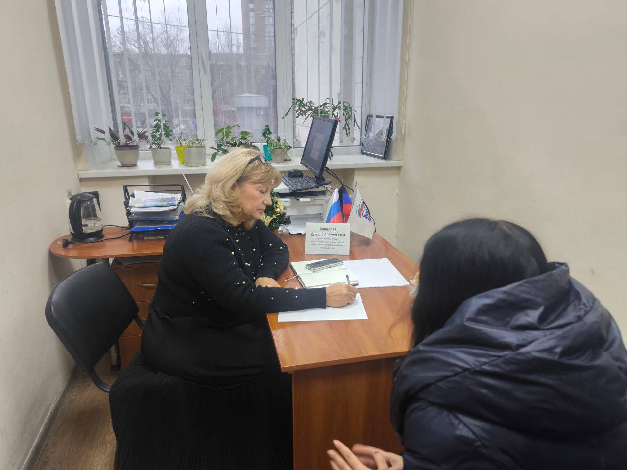 Сегодня, 23 декабря, руководитель Управы Ворошиловского внутригородского района Администрации городского округа Донецк Копылова Т.А. провела личный приём граждан в общественной приёмной Партии «Единая Россия».