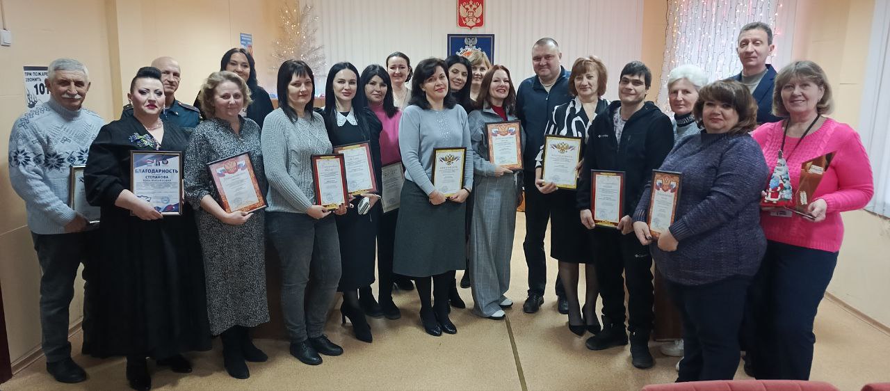 Руководитель Управы Алексей Дмитрюк поздравил всех присутствующих с наступающим Новым 2026 годом. Поблагодарил призеров региональных конкурсов и национальных проектов “Гордость Донбасса”,“Трудовая Доблесть" и “Управдом” за высокие достижения в работе по итогам 2025 года. Вручил благодарственные письма представителям трудовых коллективов учреждений и предприятий Кировского района и работникам Управы района. К поздравлениям присоединились руководители творческих коллективов Дворца Детского и юношеского творчества Дмитрий Макарчук и Елена Являнская. Дед Мороз и Снегурочка пожелали всем здоровья, семейного благополучия, успехов в работе, мира и добра!