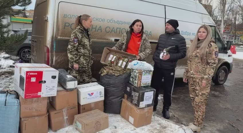 Посмотрите, какую внушительную гуманитарную помощь для наших защитников мы смогли привезти в Донецкую народную республику. Собирали всей Россией.