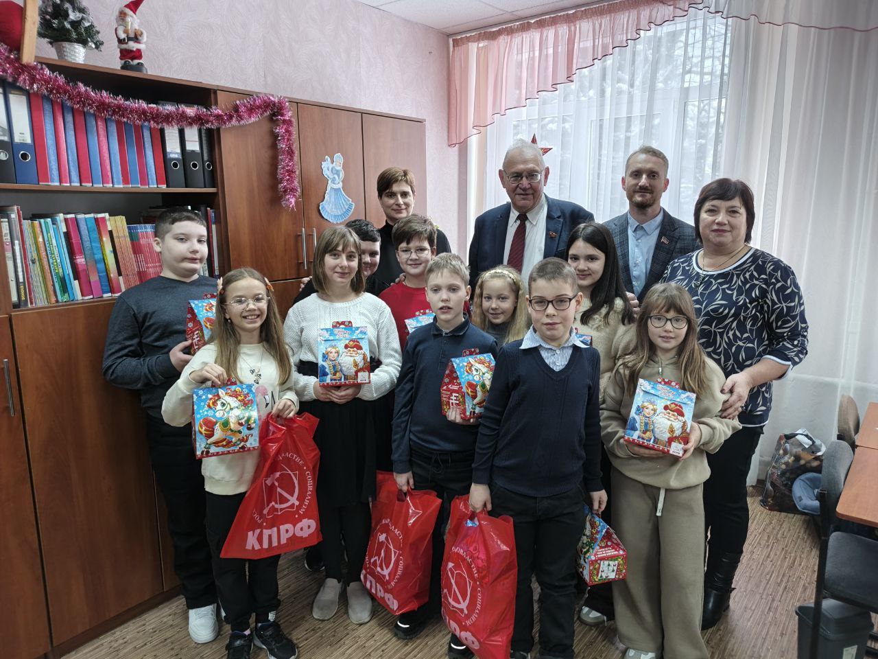 Руководитель фракции КПРФ в Народном Совете ДНР Борис Литвинов и депутат Народного Совета ДНР от фракции КПРФ Станислав Ретинский привезли учащимся донецкой школы №68 новогодние подарки.