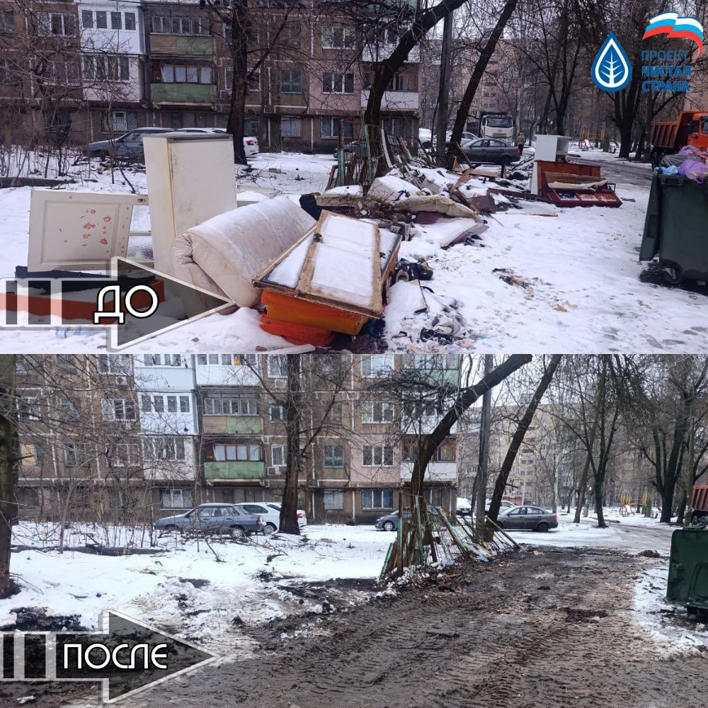 В рамках проекта партии "Единая Россия" «Чистая страна» и при поддержке Управы Куйбышевского района были проведены работы по вывозу крупногабаритного мусора на нескольких улицах: