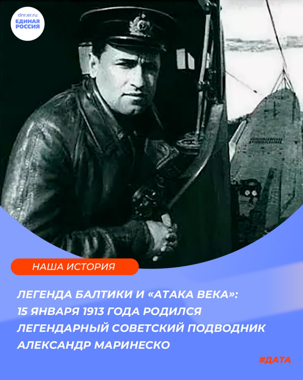 15 января 1913 года родился легендарный советский подводник Александр Маринеско. Он вошёл в историю как человек сложной судьбы и исключительной отваги. Уроженец Одессы, сын матроса, он вовсе не мечтал о военной карьере, его привлекал торговый флот. Однако судьба распорядилась иначе и он попал в подводные силы.