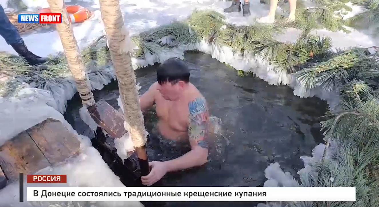 В пикник-парке «Роща», расположенном в Калининском районе Донецка, прошли настоящие народные гуляния. Все желающие могли переодеться в тепле, окунуться в прорубь и поучаствовать в увлекательных спортивных соревнованиях.