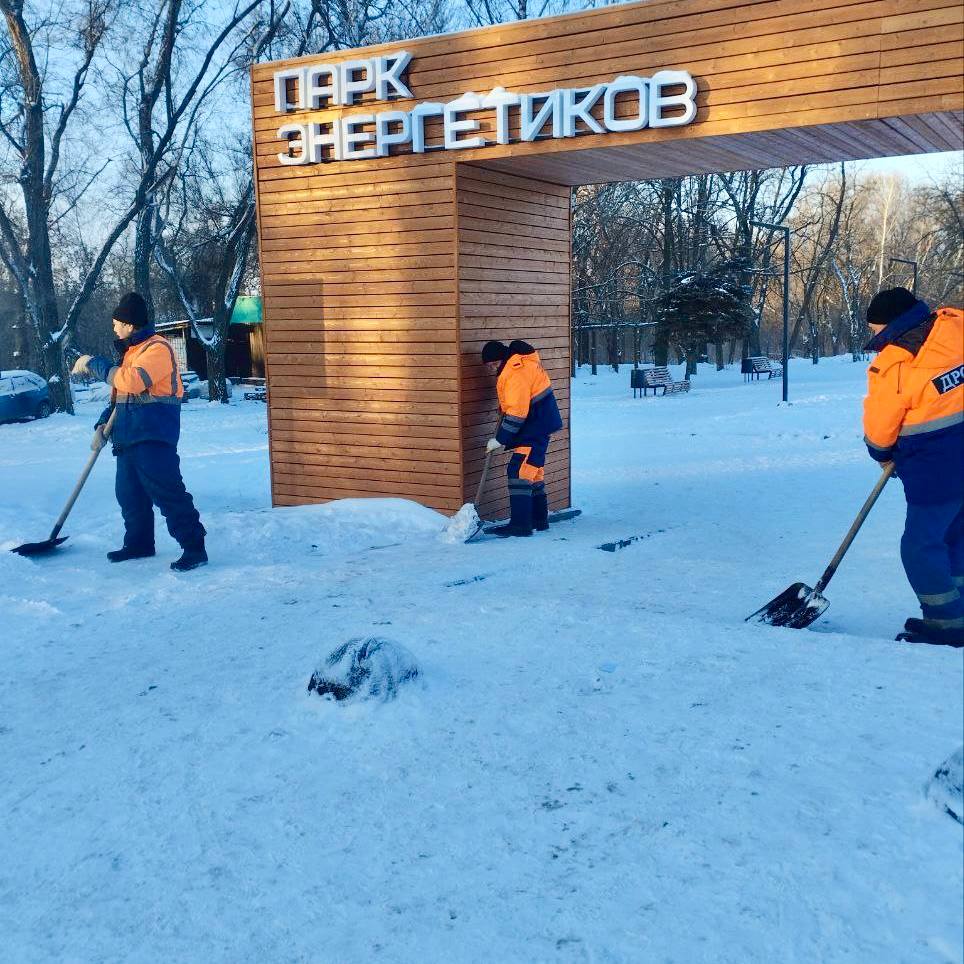 Расчистка территории парка «Энергетиков» от снега.