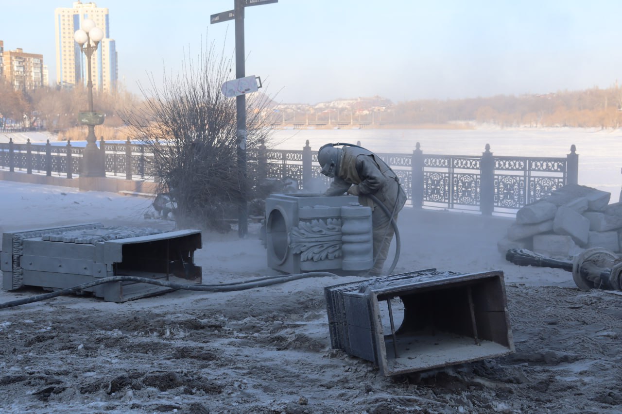 Чугунные детали и барельефы очищаются, сканируются, утраты воссоздаются по чертежам с помощью 3D. Проводится дефектовка гранитной облицовки для её восстановления.
