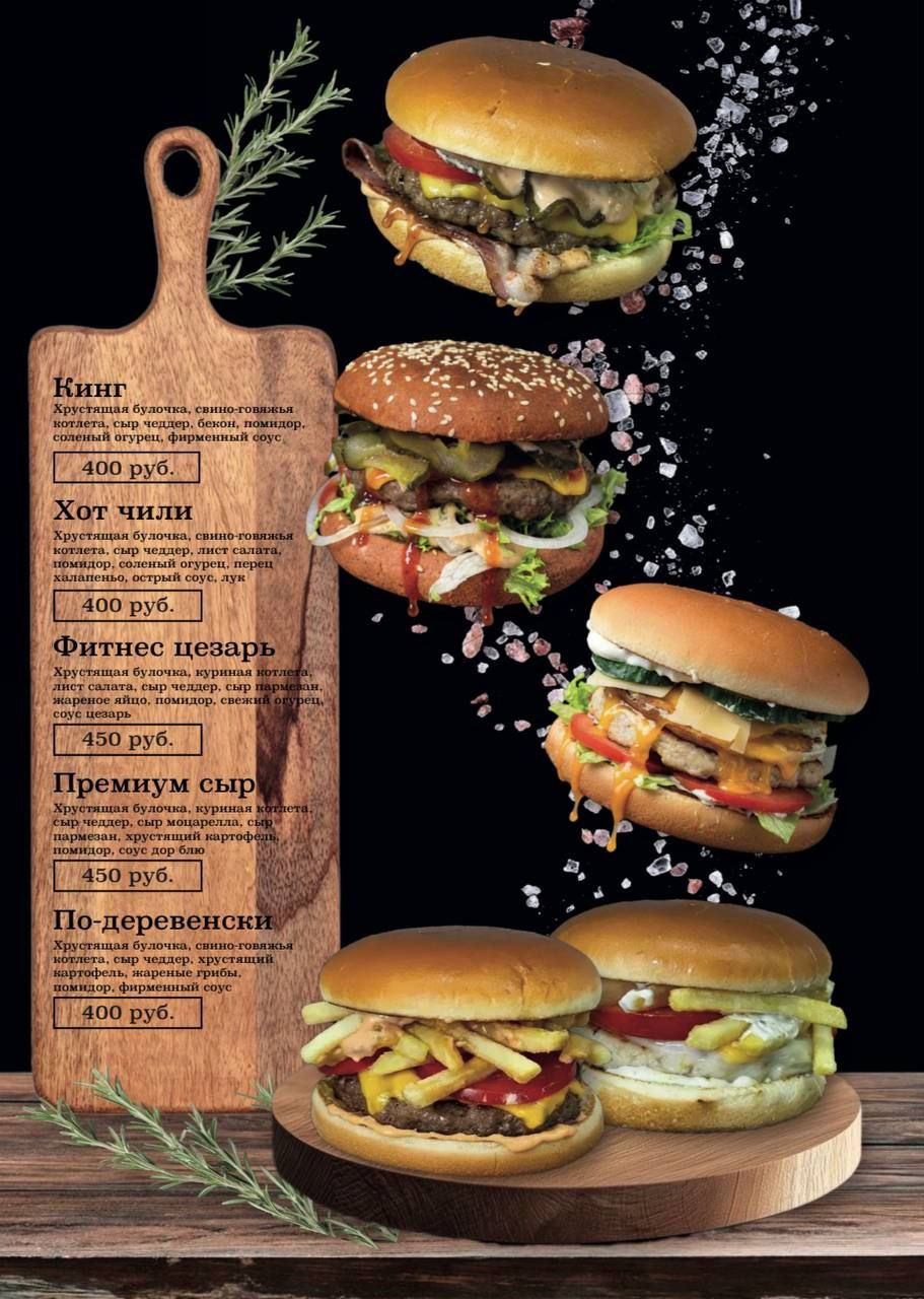 сочные бургеры с отборным мясом и авторскими соусами;