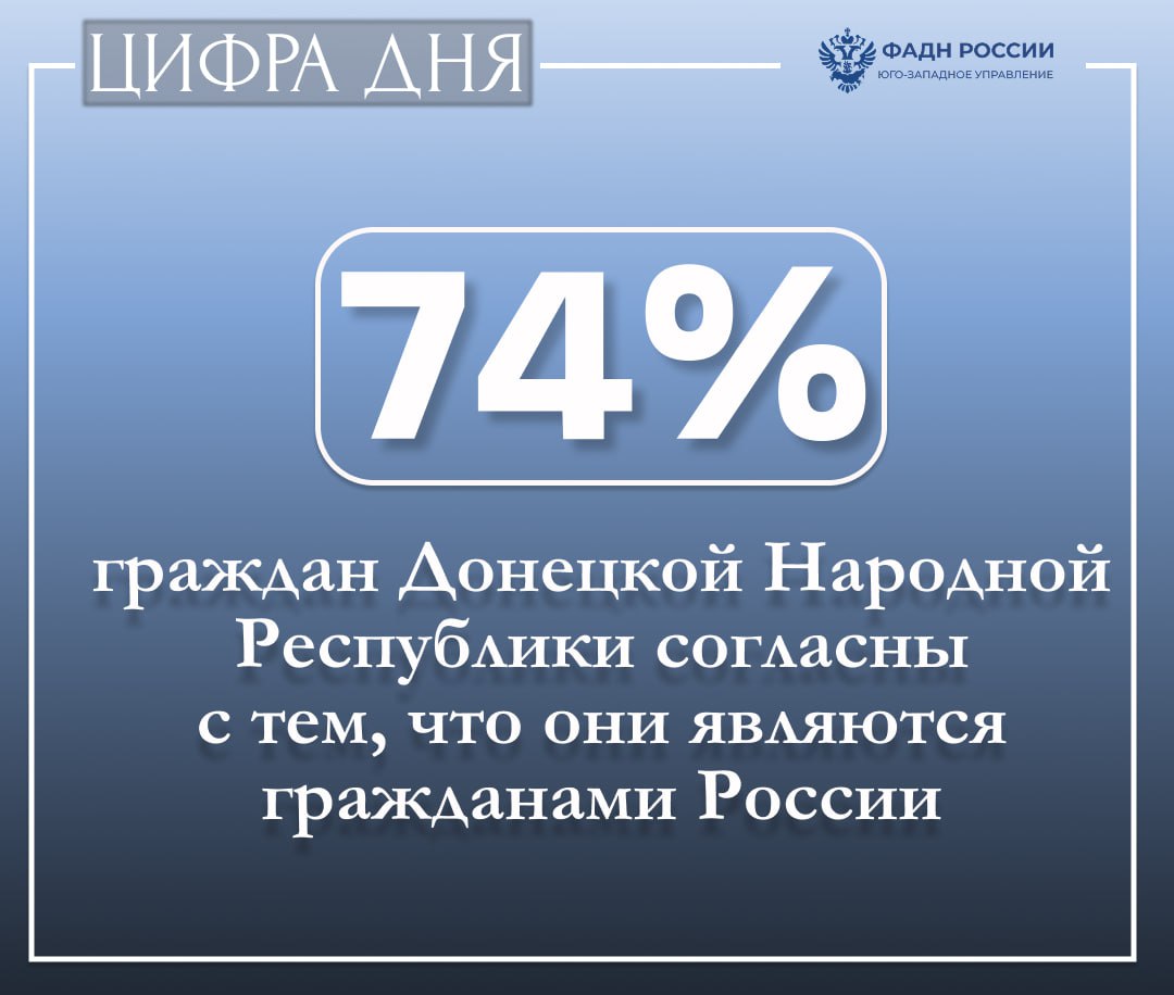 «Я горжусь тем, что являюсь гражданином России» — с таким суждением совершенно согласны 74 % опрошенных граждан Донецкой Народной Республики.