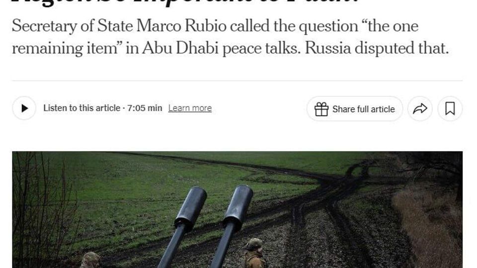 Марко Рубио утверждает, что вопрос о Донецкой области стал "единственным оставшимся пунктом" в переговорах — NYT