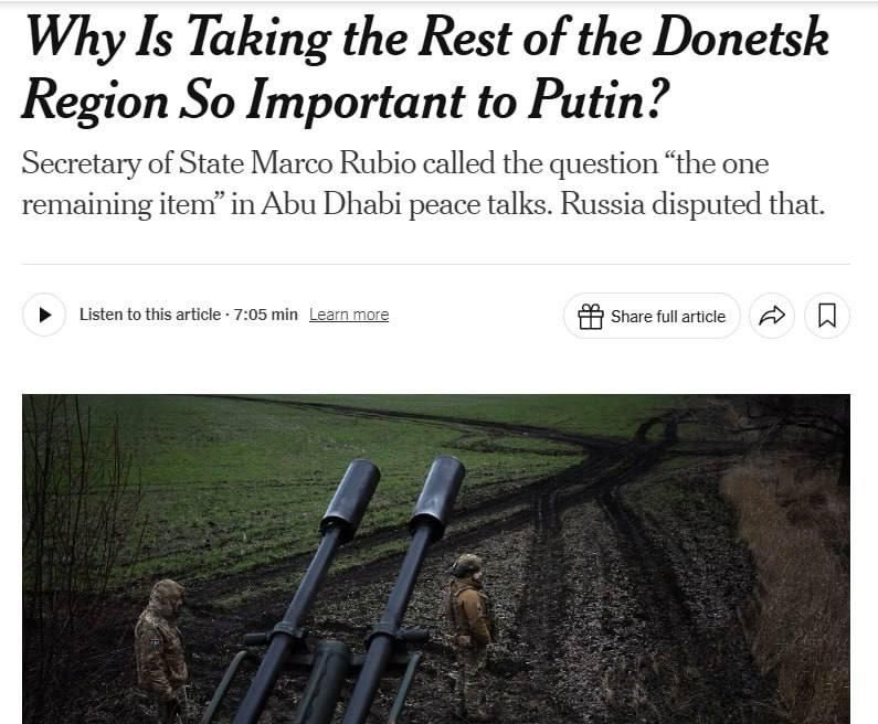 Вопрос о Донецкой области стал "единственным оставшимся пунктом" в переговорах, утверждает Марко Рубио— NYT (NE.САХАР)
