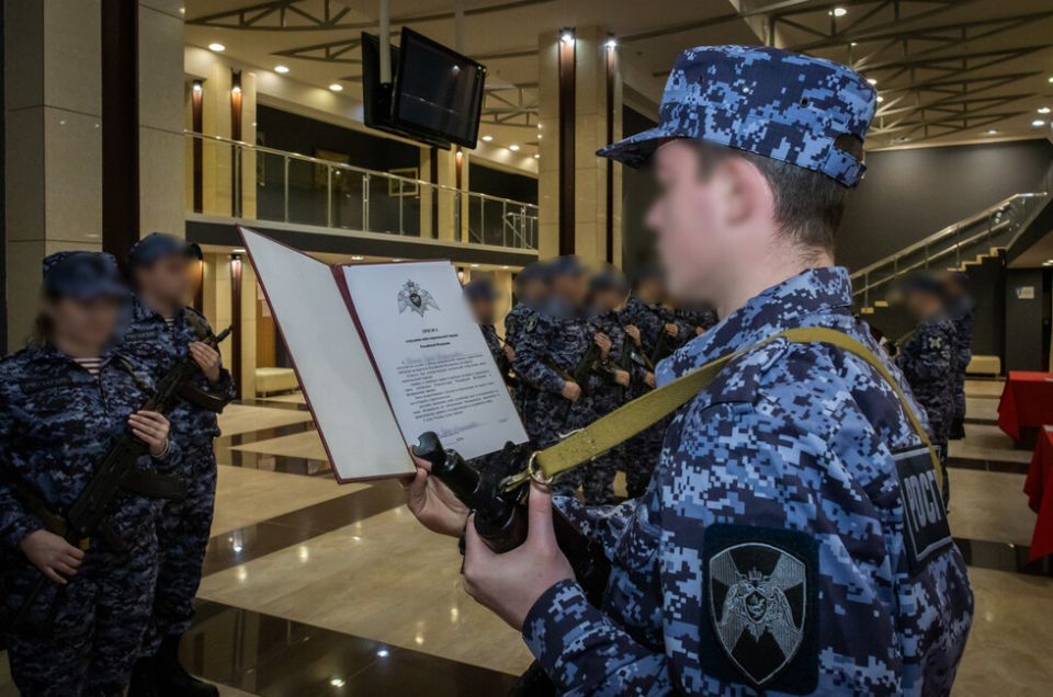 Теперь уже полноправные сотрудники Росгвардии поклялись соблюдать Конституцию и законы Российской Федерации, уважать и защищать права и свободы человека, достойно исполнять свой служебный долг и не щадить своих сил в борьбе с преступностью.