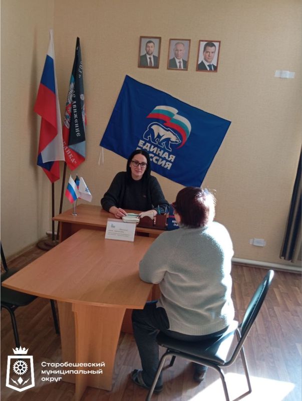 Депутат Старобешевского муниципального совета от Партии «ЕДИНАЯ РОССИЯ» Алина Шпатусько провела личный приём граждан в общественной приёмной Партии "ЕДИНАЯ РОССИЯ" Старобешевского муниципального округа.