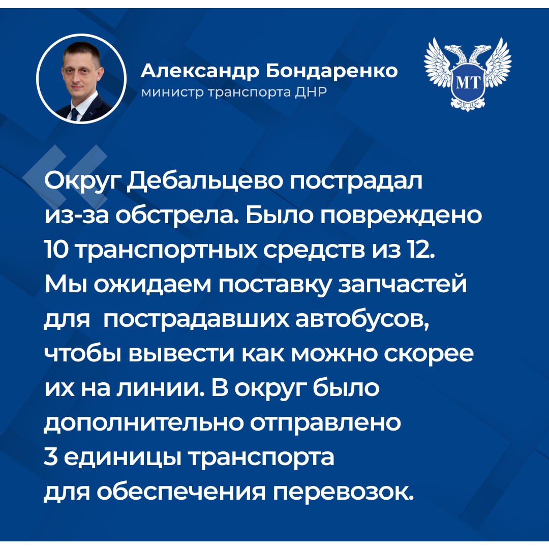 О возобновлении полноценной работы автобусного сообщения в Дебальцевском округе.