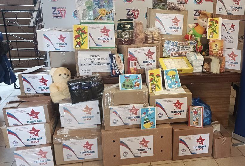 В преддверии Дня защитника Отечества, в Кировском районе города Донецка, в рамках Всероссийской благотворительной акции «Тепло для Героя», активно проходил сбор посылок для наших защитников.