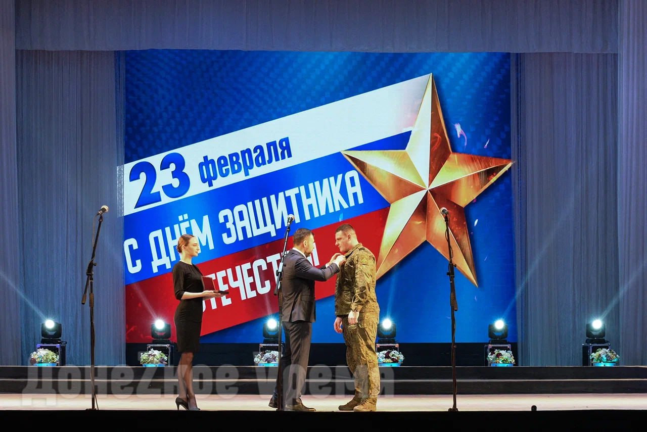 В торжественной обстановке глава ДНР Денис Пушилин поздравил военнослужащих с Днем защитников Отечества. В честь праздника он присвоил звание Героя ДНР 18 защитникам, троим из них посмертно. Еще двоим вручил Орден Республики.