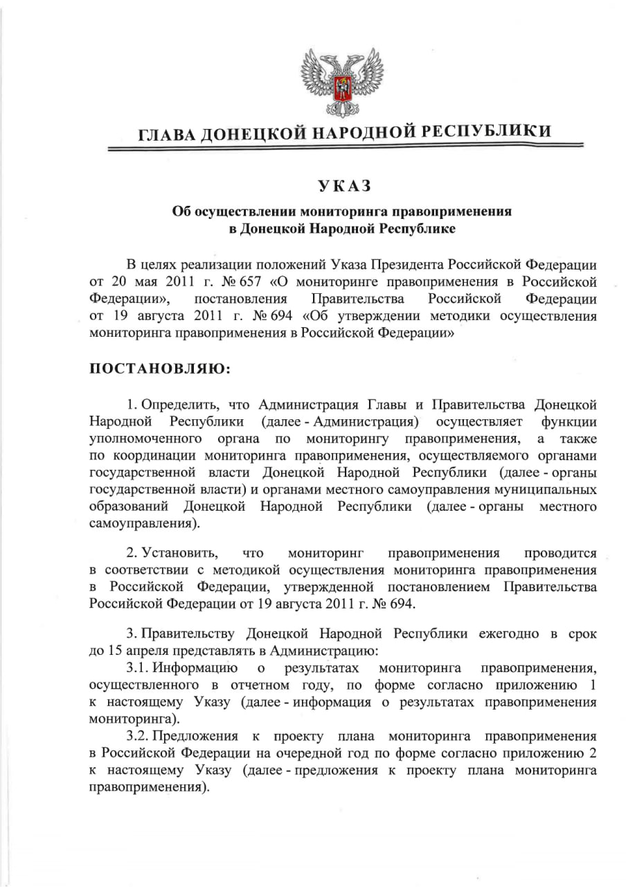 Урегулированы вопросы осуществления мониторинга правоприменения в Донецкой Народной Республике.