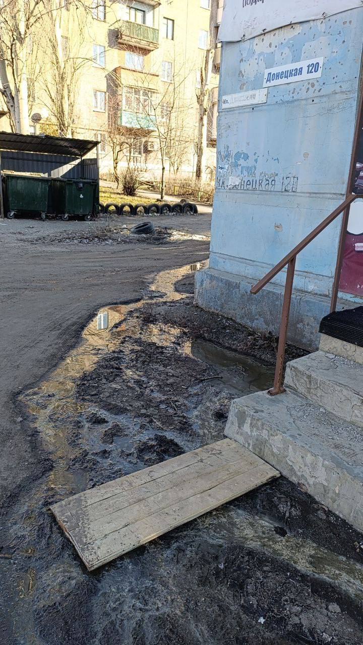 По улице Донецкая около дома № 122 (5-ти этажный Дом Слепых Инвалидов), с сентября 2025-го года забита канализация. Квартиры на первых этажах топит жидкость с человеческими отходами.