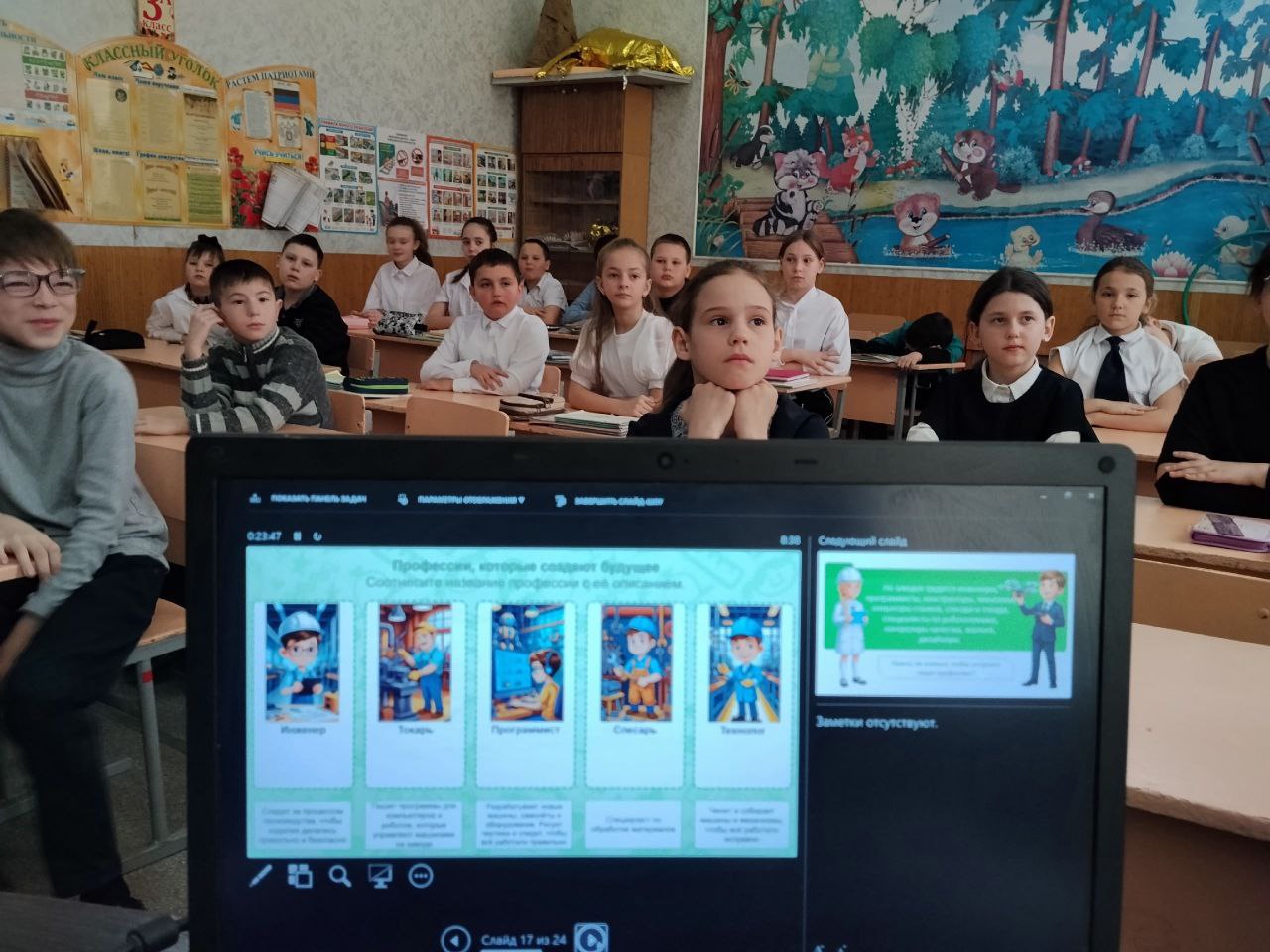 На занятии отметили важность инженерных и рабочих профессий для страны. Школьники посмотрели тематические видеоролики, выполнили интерактивные задания и активно участвовали в дискуссии.