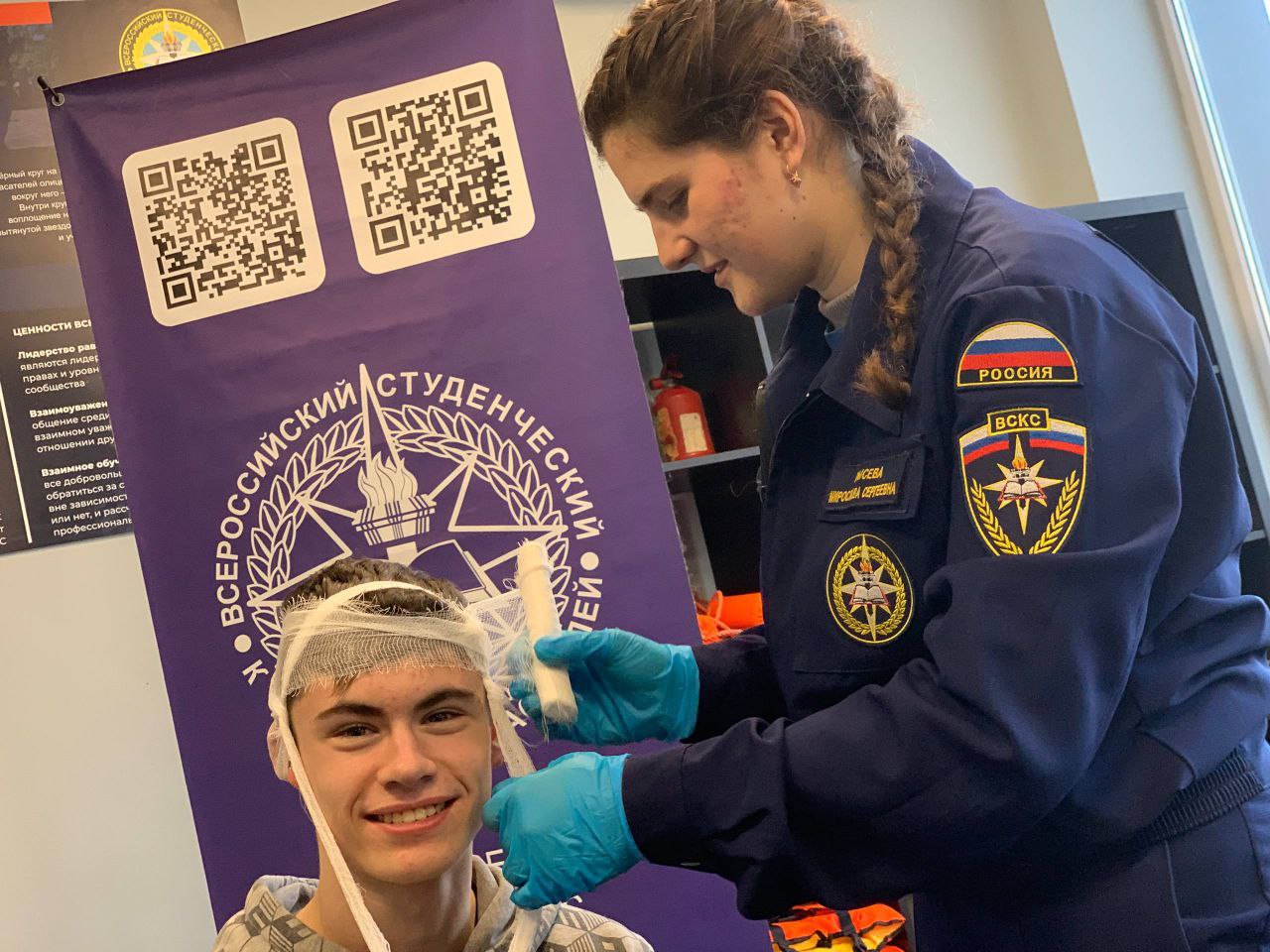 Студенты-спасатели Мариупольского ССО ВСКС ПГТУ провели занятие для школьного спасательного отряда «Спасатель» ГБОУ «Средняя школа №7 г. о. Мариуполь». Тема занятия — остановка кровотечения.