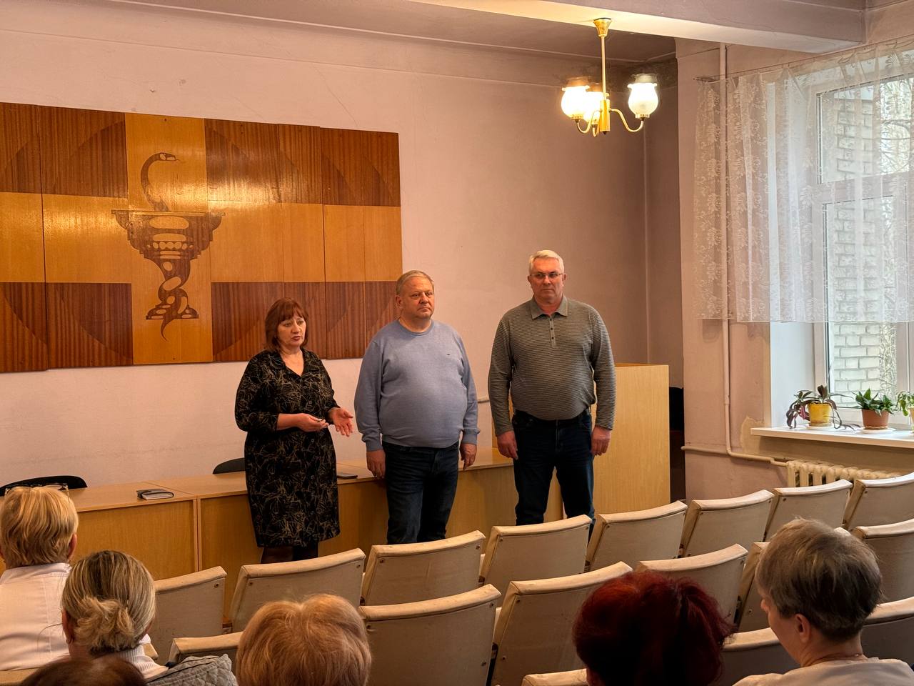 16 марта 2026 года заместитель руководителя Управы Людмила Аринович совместно с депутатами Донецкого городского совета Михаилом Рыбаковым и Сергеем Тельных провели встречу с трудовым коллективом ГБУ «ЦГКБ № 24» по адресу: пр-т. Семашко, 3.