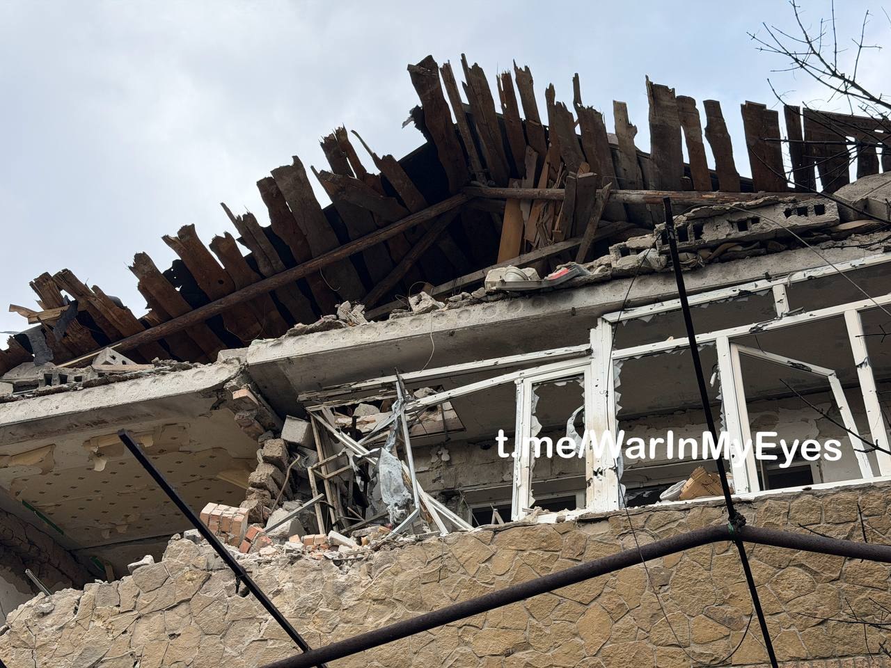 Последствия прилёта ударных БПЛА ВСУ сегодня ночью в Киевском районе Донецка, посёлок Весёлое.