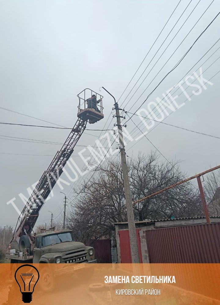 Сотрудники предприятия «Донецкгорсвет» продолжают выполнять работы по монтажу, обслуживанию и ремонту инженерных сетей наружного освещения.