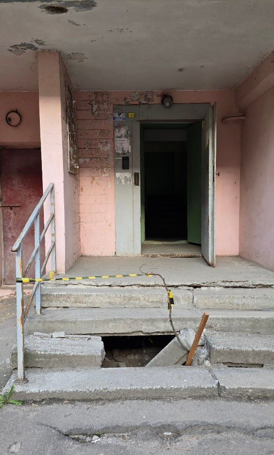 Крыльцо уходит под землю в одном из домов на Челюскинцев