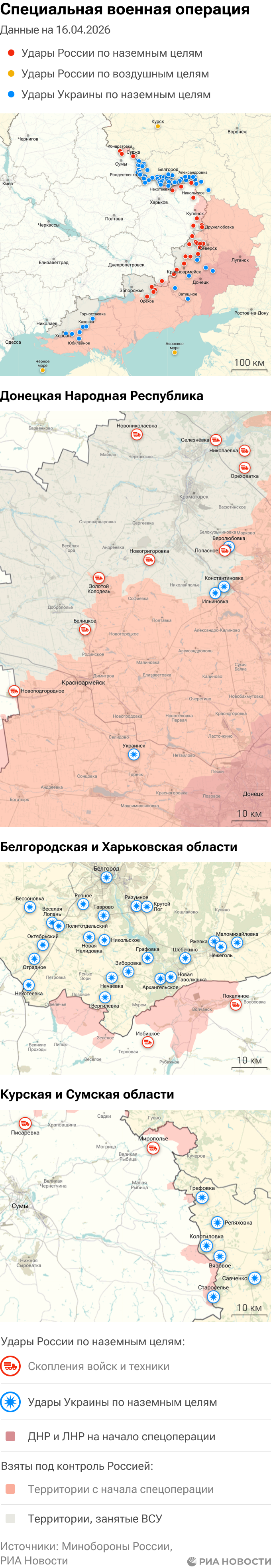 Данные Минобороны и администраций новых регионов на 16 апреля 2026 года