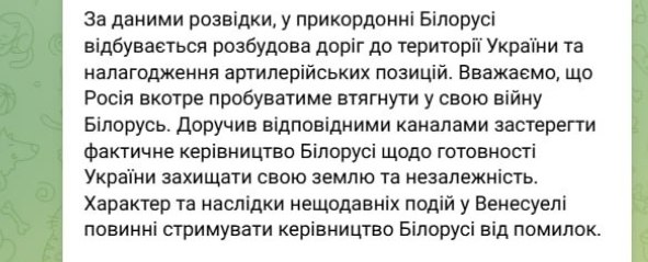 На границе с Белоруссией ведется строительство дорог, ведущих на территорию Украины, а также оборудование артиллерийских позиций. Мы считаем, что Россия в очередной раз попытается вовлечь Белоруссию в свою войну.