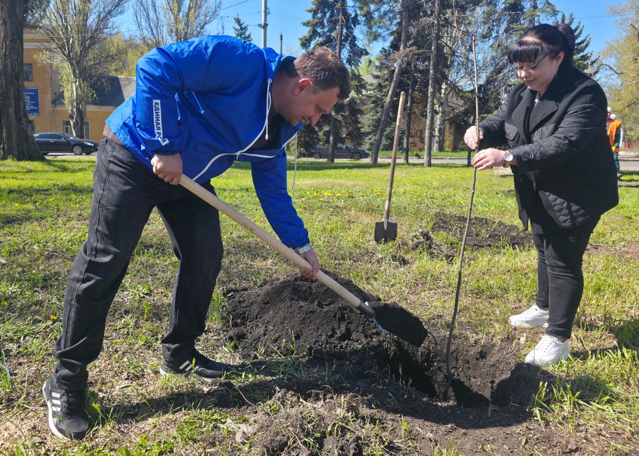 В рамках акции «Чистый четверг» сотрудники управы вместе с коллективом «Зеленое строительство города Донецка» дали жизнь молодым скандинавским рябинам на улице Куйбышева.