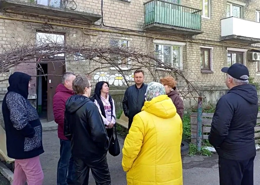 Депутат Донецкого городского совета Герман Полунин совместно с представителями управы района провел встречу с жителями домов № 6, 8 и 10 по улице Сомова.