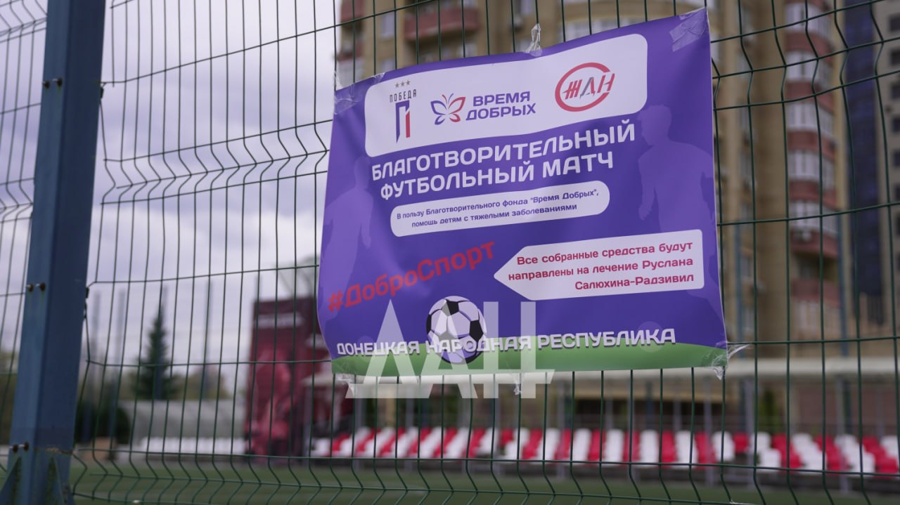 На поле встретились команды ФК «Железные дороги Новороссии» и ФК «Победа». Игра стала инициативой в поддержку тяжелобольных детей — подопечных фонда «Время добрых».