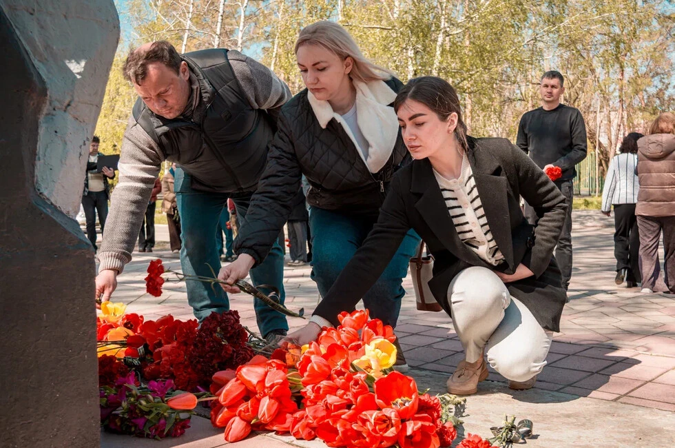 Министр молодежной политики ДНР и глава Харцызска почтили память жертв Чернобыльской трагедии совместно с ликвидаторами аварии. В церемонии возложения цветов участвовали активисты молодежных организаций, представители власти.