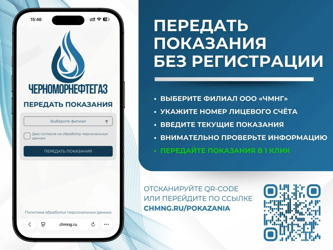 ПЕРЕДАВАЙТЕ ПОКАЗАНИЯ В 1 КЛИК – БЕЗ РЕГИСТРАЦИЙ!
