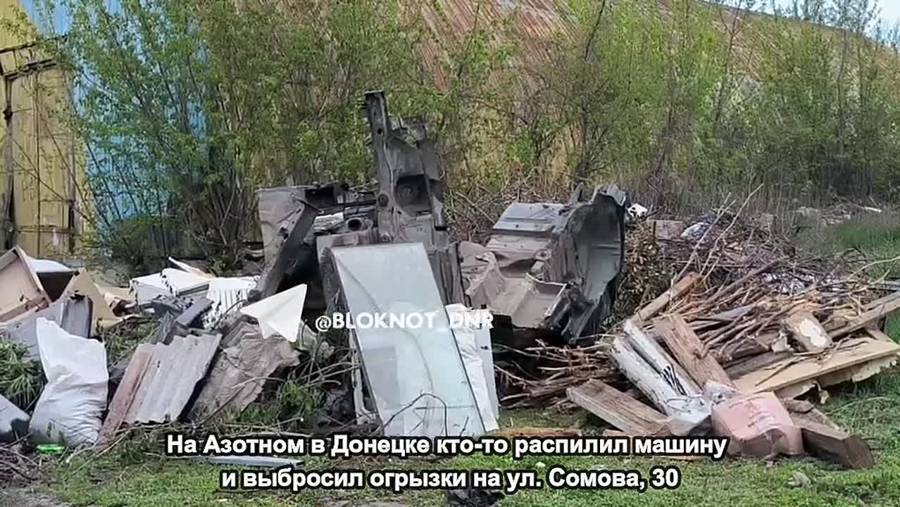 На Азотном в Донецке кто-то распилил тачку и выбросил огрызки на ул. Сомова, 30
