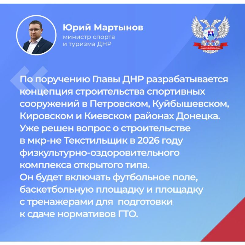 На встрече обсуждались текущие и будущие планы по развитию спортивной инфраструктуры одного из районов Донецка - Киевского.Особое внимание было уделено восстановлению и модернизации ключевых объектов — дворца спорта «Локомотив» и спортивного комплекса...