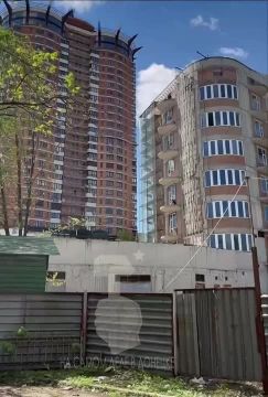 Последствия обстрела Киевского района Донецка сегодня ночью.Один из боеприпасов ударного дрона, предварительно ФАБ-100, не разорвался.