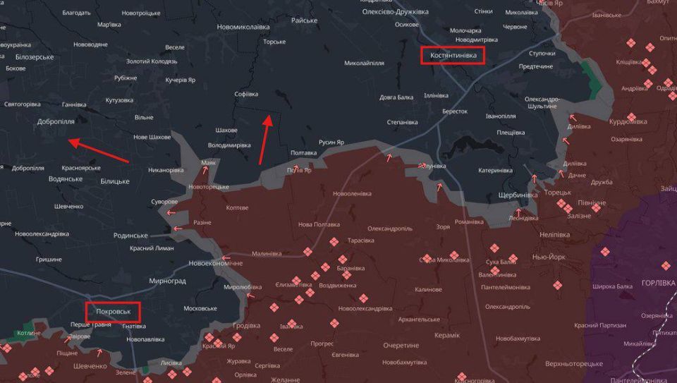 , - группировка ВСУ "Хортица"На участке российско-украинского фронта в ДНР между городами Константиновка и Покровск армия России имеет определённое продвижение. Цель — обойти оборону Покровска с востока и взять город в полукольцо.О продвижении...